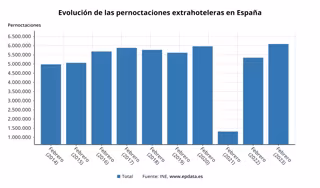 El organismo ha destacado que es el segundo mes consecutivo en el que las pernoctaciones extrahoteleras superan las del mismo mes de 2019, antes de la pandemia.