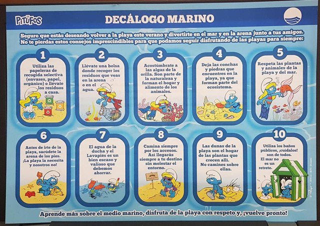 El decálogo se compartirá también en ocho playas tematizadas de Los Pitufos, donde los niños podrán jugar con sus personajes favoritos y aprender más sobre el ecosistema marino.