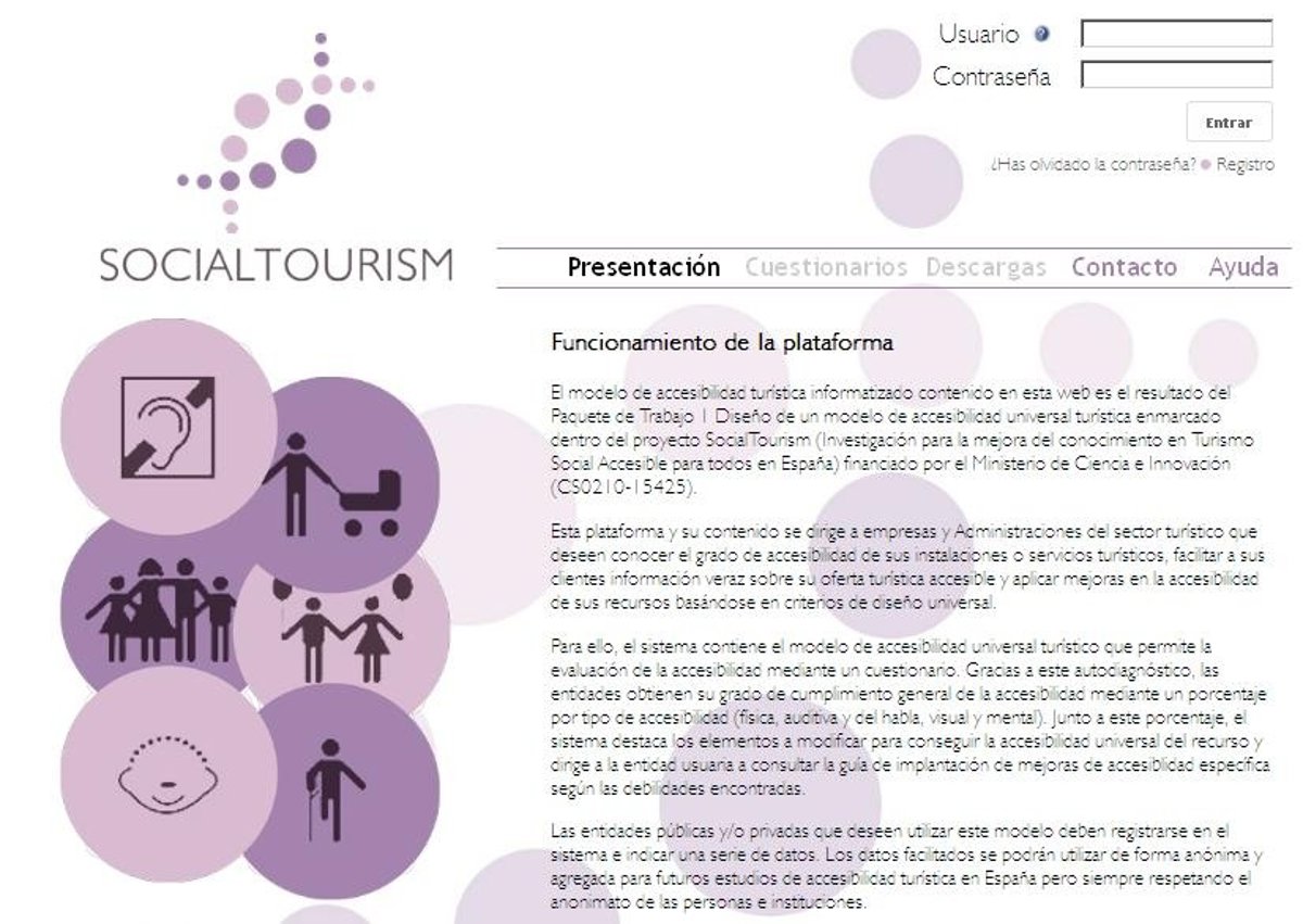 La plataforma está disponible en la dirección http://socialtourismplatform.com de forma gratuita para su uso por todas las empresas y administraciones del sector turístico que quieran conocer cuál es su estado de accesibilidad y, en su caso, mejorarlo en base a criterios de diseño universal.