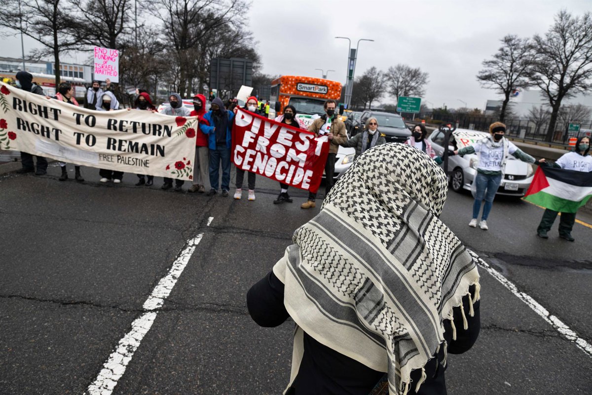 Manifestantes por palestina cerca del aeropuerto de Nueva York - Europa Press/Contacto/Laura Brett