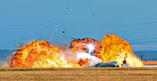 Por si fuera poco, la cola rozó uno de los cables de alta tensión que encontró a su paso y provocó una tercera explosión. Todo estaba envuelto en llamas, una de las torres de alta tensión en el suelo. Seguían registrándose explosiones, pero ya de menor intensidad.
