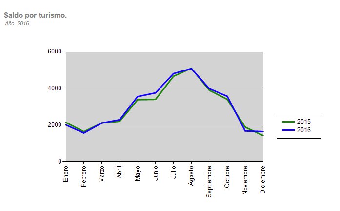 Durante todo 2016, se registraron contracciones en el saldo turístico en enero (-6,2%), febrero (-4,3%), marzo (-0,1%), agosto (-0,4%) y noviembre (-11%).