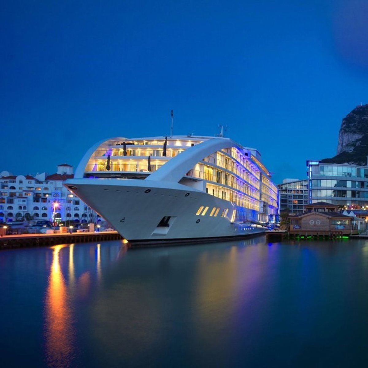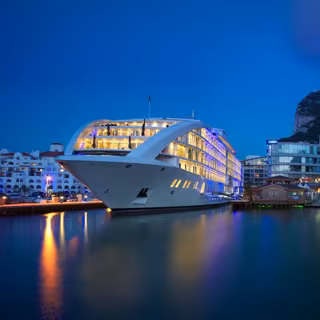 Uno de los yate-hotel del grupo finlandés, atracado junto al Peñón de Gibraltar. - SUNBORN