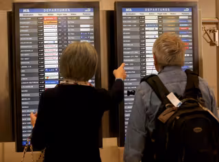 Archivo - Pasajeros consultando tiempos de salida en aeropuerto. - JOE RAEDLE - Archivo