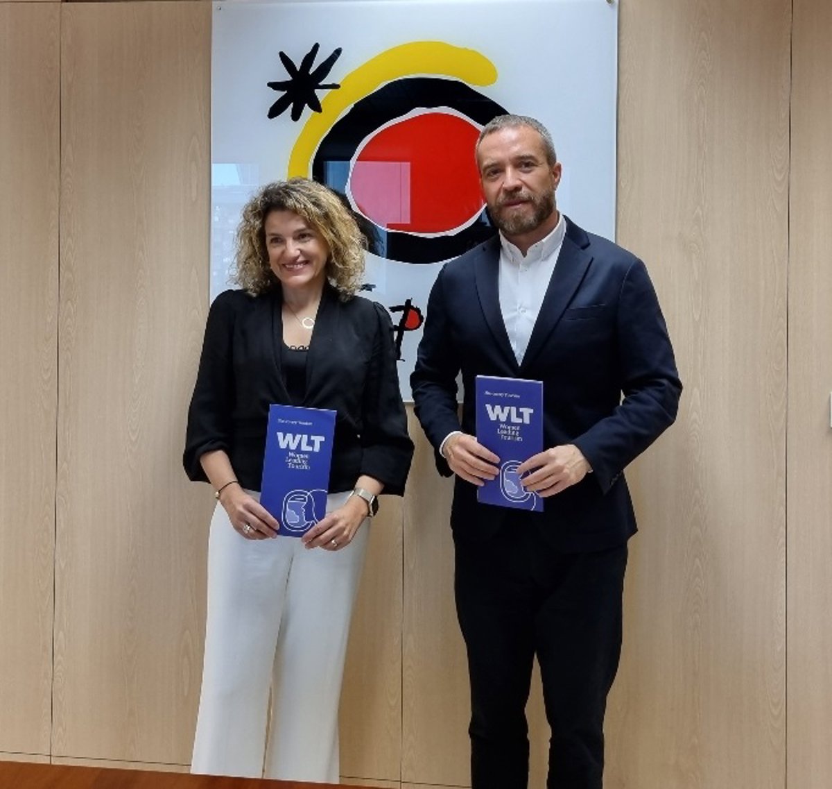El director general del Instituto de Turismo de España (Turespaña), Miguel Ángel Sanz, y la presidenta de Women Leading Tourism (WLT), Maribel Rodríguez. - TURESPAÑA