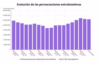 En los nueve primeros meses del año las pernoctaciones extrahoteleras se incrementaron un 0,1% respecto al mismo periodo del año anterior.