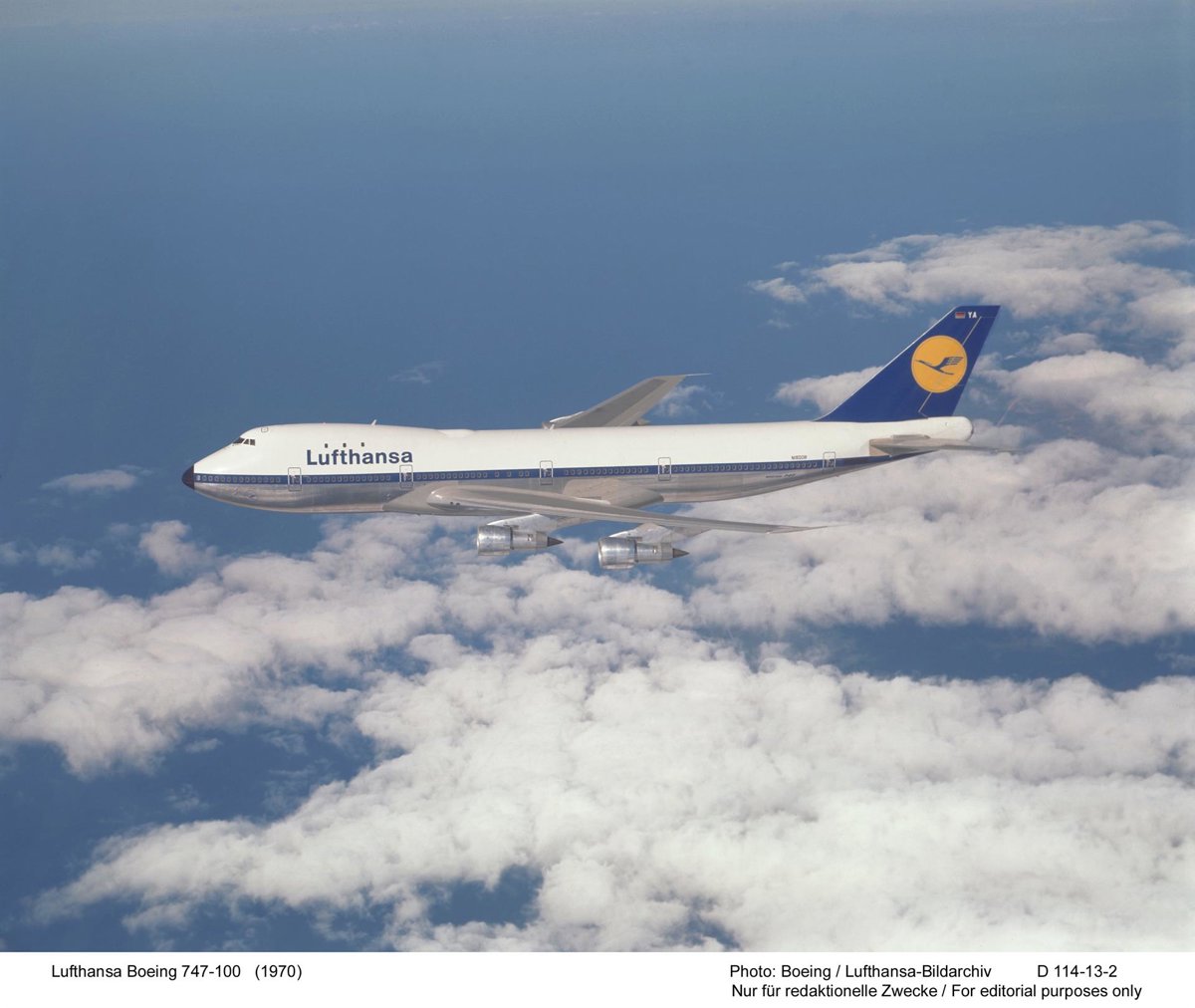 El desarrollo de la familia de aviones Boeing 747 comenzó a mediados de los años 60, cuando Boeing como respuesta a las crecientes necesidades de la aviación diseñó una cabina de pasajeros más ancha de lo habitual. Cuatro años de planificación y de desarrollo, en los que también participaron los ingenieros de Lufthansa, y el primer 747-100, construido a partir de unos seis millones de piezas, vio la luz.