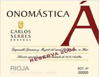 De producción limitada y elaborado con tres variedades autóctonas de Rioja, Tempranillo (80%), Graciano (10%) y Mazuelo (10%), cultivadas en la Finca El Estanque, viñedo que posee la bodega en uno de los mejores terruños de Haro, Onomástica tinto Reserva ha permanecido 24 meses en barricas nuevas de roble francés y americano, y otros 24 meses más afinándose en botella.