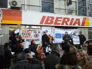 Más de un centenar de trabajadores de Iberia se han concentrado este lunes frente a la sede de compañía en Madrid para protestar por el "desmantelamiento", la "mala gestión" y el plan de reestructuración propuesto por la compañía, que contempla 3.836 despidos, y para concienciar a la ciudadanía de la importancia de la aerolínea para la economía española.