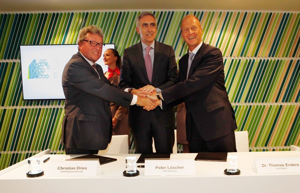 Además, el consejero delegado de EADS, Tom Enders, el de Siemens, Peter Löscher, y el propietario de Diamond Aircraft, Christian Dries, han firmado un memorando de entendimiento (MoU) en 'Le Bourget' para establecer el rumbo de su futura cooperación en el desarrollo de aviones eléctricos, confirmando la colaboración en el proyecto que existe desde 2011.