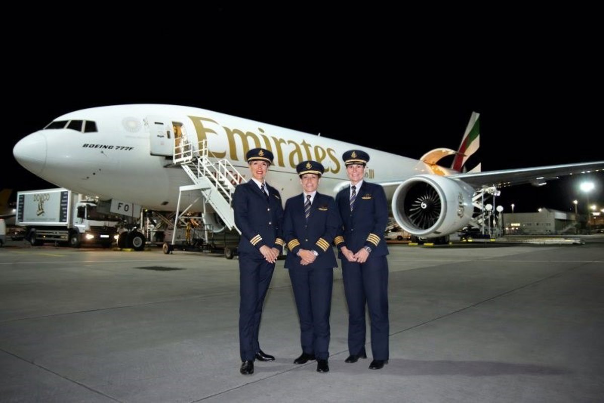 La aerolínea Emirates celebra la creciente contribución de las mujeres en la industria aérea y para ello ha publicado un video que muestra a una tripulación compuesta exclusivamente por mujeres operando el avión de Emirates SkyCargo Boeing 777, con varias paradas.
