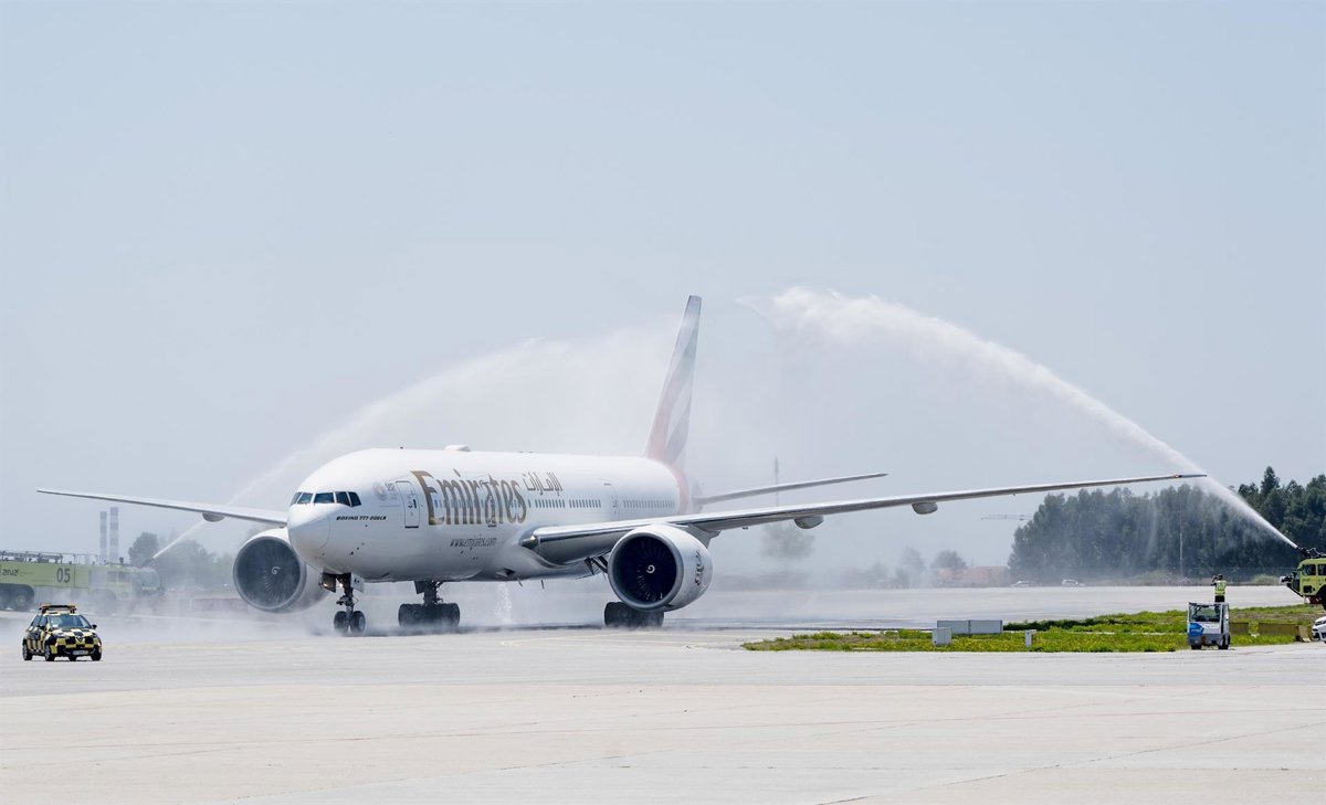 El vuelo inaugural, EK197, aterrizó en el aeropuerto internacional de Oporto el martes por la tarde, marcando el inicio del primer servicio de la aerolínea en el norte de Portugal.