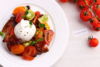 Por otro lado, los pasajeros de 'first' y 'business Class' que viajen desde y hacia Italia en agosto podrán disfrutar de un aperitivo hecho con tomates de temporada acompañados de burrata, un queso italiano hecho de mozzarella y nata. El queso que se sirve a bordo es fresco y se prepara cada día.