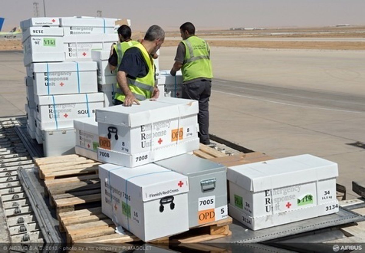 La Fundación Airbus Corporate y la Media Luna Roja de la Cruz Roja envían ayuda médica a los refugiados sirios en Jordania. En concreto, el Airbus A340-600 fue cargado en Helsinki (Finlandia) con 25 toneladas de equipo médico y suministros, así como personal médico y logístico.