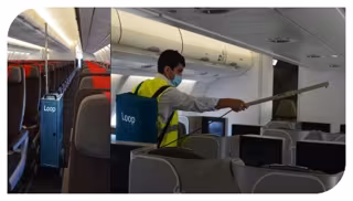 Para la limpieza diaria más profunda de los aviones, la startup española Loop Disinfection, también ha diseñado para Iberia un sistema de desinfección de cabinas de fácil manejo, fiable y de bajo consumo eléctrico, lo que lo hace más sostenible.