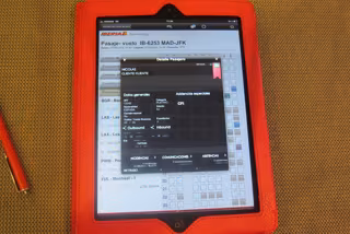 Sin realizar una "inversión excesiva" en comparación con lo que suponen los 20.000 informes anuales en papel "tanto económica como burocráticamente", el sobrecargo Rafael Blanco ha destacado que este iPad ofrece una listado de los pasajeros con una ficha de cada uno de ellos e información acerca de las incidencias que pudiera haber tenido durante el vuelo.