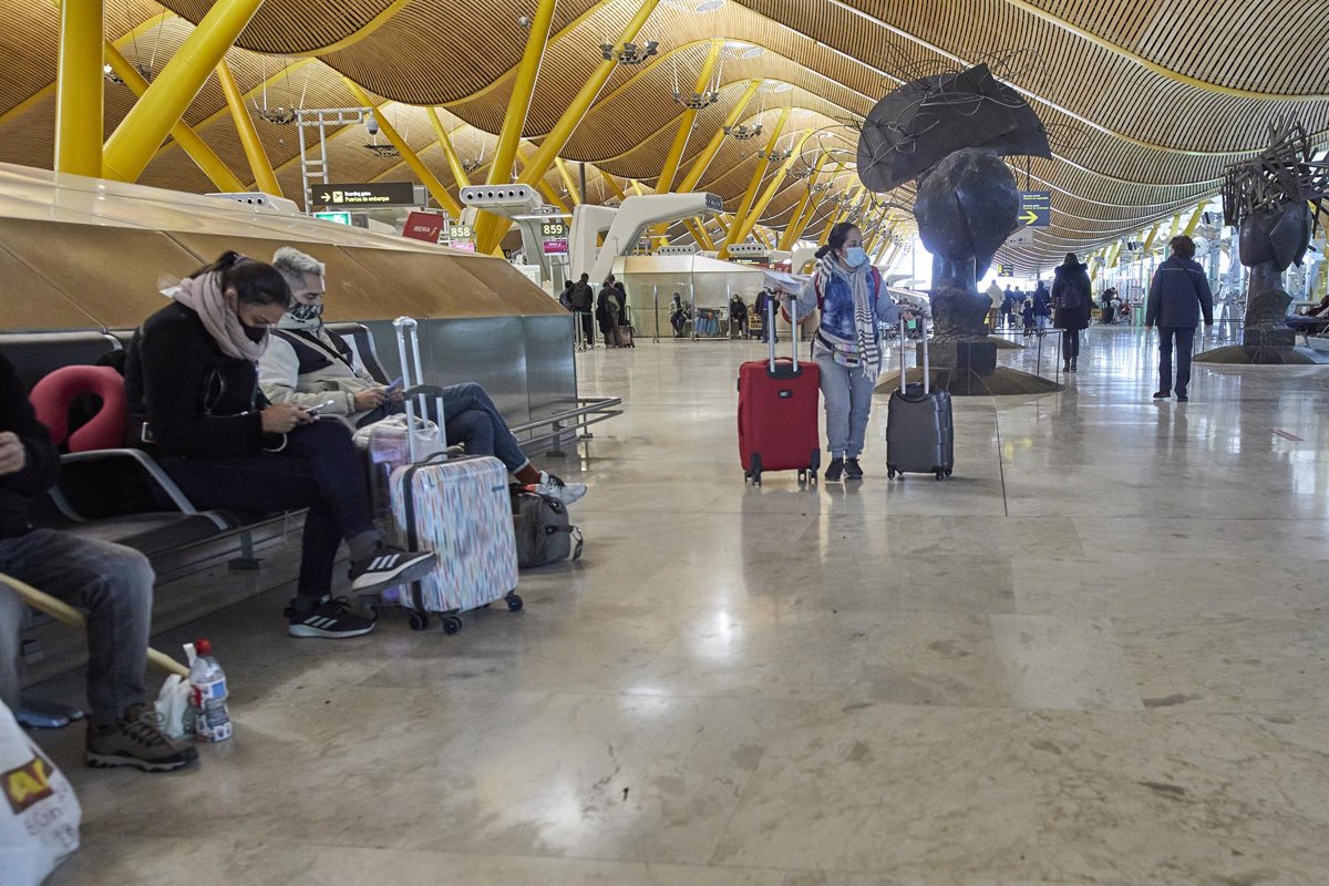 Varios pasajeros esperan sentados en los asientos de la Terminal 4 del aeropuerto Madrid-Barajas Adolfo Suárez - Jesús Hellín - Europa Press