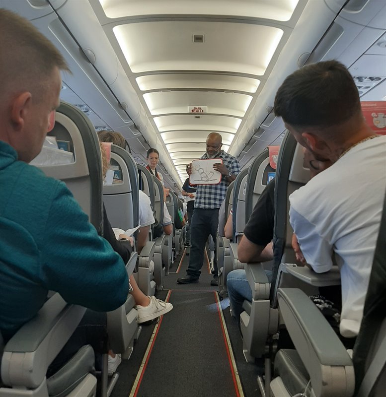 La compañía aérea ha explicado este viernes que, durante el vuelo, los más de 200 pasajeros que viajaban desde Madrid a Tenerife, pudieron disfrutar de la clase en la que Mansuy dio a conocer las técnicas y claves para dibujar.