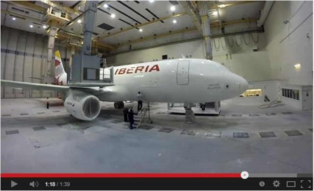 Iberia prepara sin descanso en sus hangares a sus aviones para que presenten cuanto antes la nueva imagen de la marca en sus fuselajes, un proceso que dura una semana y que ahora la aerolínea presenta en un video a 'cámara rapida' de apenas dos minutos.