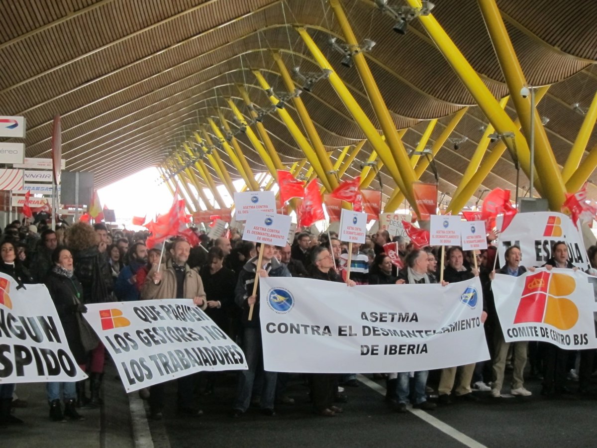 Este viernes, en el que la compañía celebra sus 85 años, unos 2.000 trabajadores de Iberia se han concentrado a mediodía en la T4 en contra de los planes de la compañía.