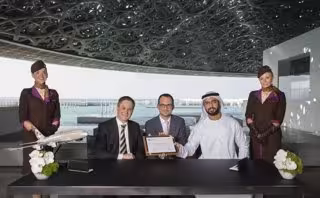 Louvre Abu Dhabi ha firmado un acuerdo de colaboración con Etihad Airways, por el cual la aerolínea trabajará en estrecha colaboración con el museo en áreas de cooperación de marca, marketing y difusión por redes sociales.