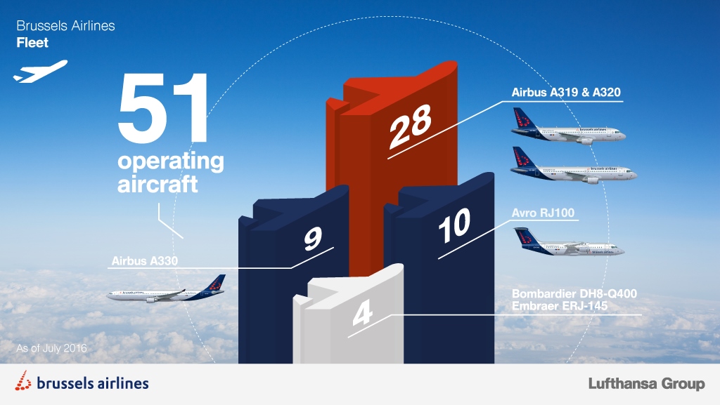 En los últimos tres años, Brussels Airlines ha reducido sus costes unitarios, sin incluir el combustible, en casi un 10%. En el ejercicio de 2015, logró un beneficio operativo de 43,4 millones de euros. La compañía emplea a 3.500 trabajadores.