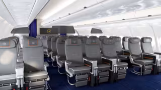 El respaldo puede reclinarse aún más y la distancia entre asientos delantero y trasero es significativamente mayor, con 97 centímetros. Como resultado, los pasajeros tienen aproximadamente 1,5 veces más espacio que en 'Economy Class'.