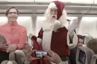En un vuelo intercontinental que cubría la ruta México DF Madrid, las pantallas frontales de los asientos cambiaron la programación y presentaron la imagen de un Papa Noel que trepaba por la cola del avión para meterse dentro del mismo ante la mirada sorprendida de niños y mayores.