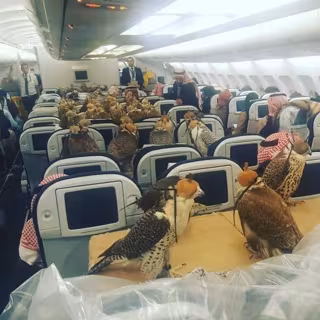 Al parecer pertenecen a un príncipe saudí que compró 80 billetes de clase económica para que las aves viajasen con él. Según comunicó, un amigo suyo capitán de avión le pasó la fotografía y decidió compartirla.