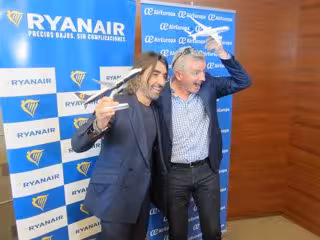 El consejero delegado de Ryanair, Michael O'Leary, y el consejero ejecutivo de Globalia, Javier Hidalgo, presentaron en Madrid la nueva alianza que permitirá una rebaja "sustancial de precios" para los usuarios.