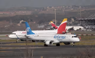 Un avión de Iberia y otro de Air Europa en las pistas del Aeropuerto de Barajas tras la reapertura del espacio aéreo de Barajas después de estar dos horas cerrado por la presencia de varios drones, en Madrid (España) a 3 de febrero de 2020. - Eduardo Parra - Europa Press - Archivo