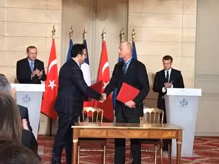 El acuerdo fue firmado en el Palacio del Elíseo, en París, durante la visita oficial del presidente turco, Recep Tayyip Erdogan, a Francia con el presidente francés, Emmanuel Macron.