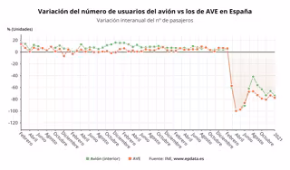 Variación anual del número de usuarios del avión frente a los de AVE hasta enero de 2021 - EPDATA