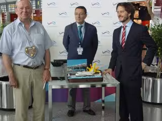 En total, se ponen a la venta para esta conexión 27.360 asientos durante el verano. Este lunes han llegado al aeropuerto de Málaga-Costa del Sol alrededor de un centenar de pasajeros que, al llegar, han sido recibidos por el director del aeródromo, Salvador Merino y un responsable de la aerolínea, además de degustar una copa de vino y una tarta conmemorativa.