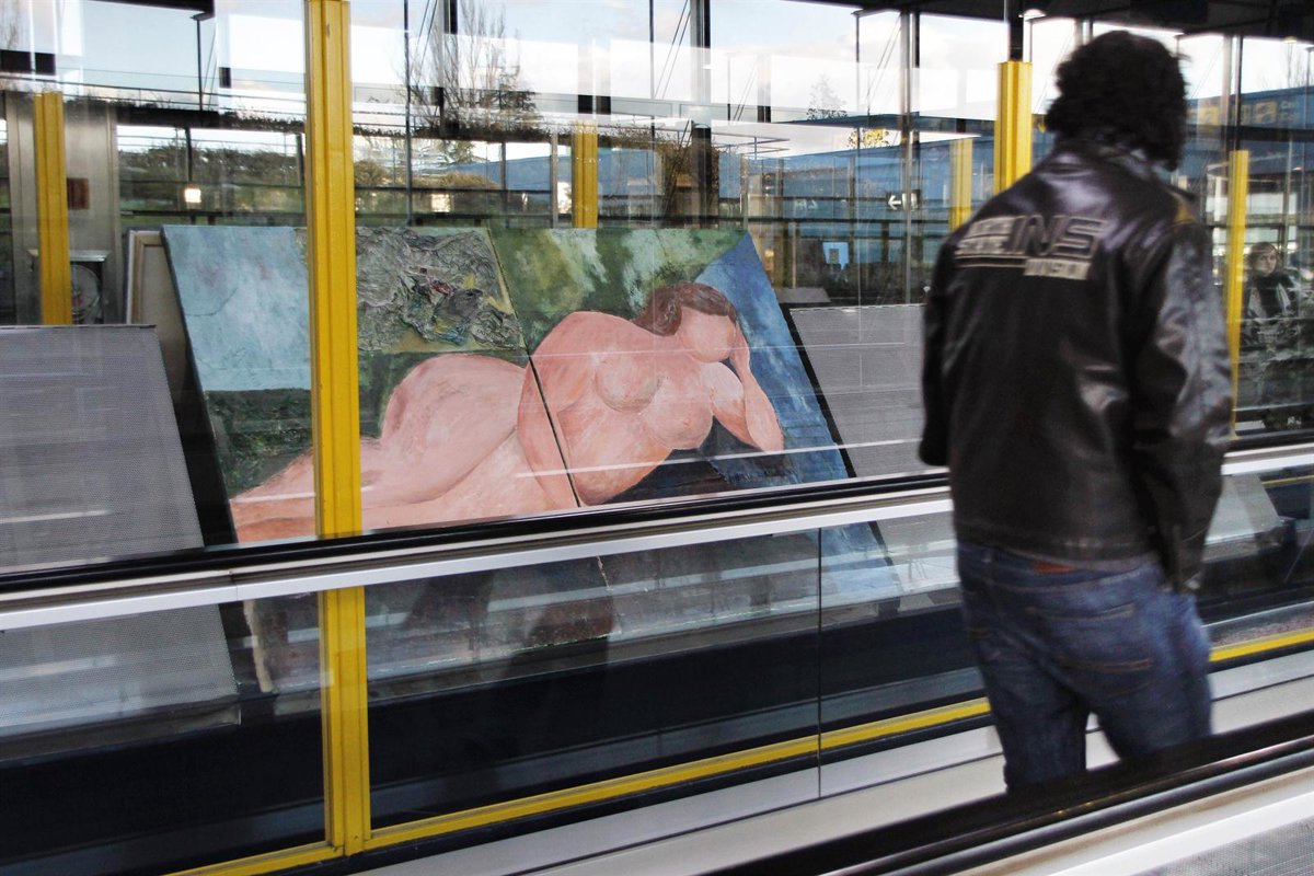 La muestra, situada en el pasillo que da acceso a la Terminal 2 del aeropuerto desde el Metro y el Parking P2, recoge pinturas de una temática variada donde, junto a cuadros con bodegones y desnudos, la artista reúne una colección de figuras humanas que reflejan escenas cotidianas, frecuentemente con mujeres sin rostro o vueltas de espalda al espectador.