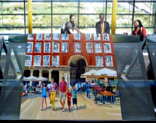 La exposición está situada en el pasillo que da acceso a la Terminal T2 del aeropuerto desde el Metro y el Parking P-2.