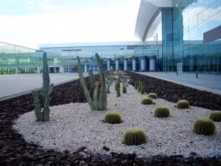 El proyecto, llevado a cabo por Acciona Medio Ambiente en el patio norte de la zona exterior de la T1, ha consistido en la plantación de más de 240 unidades de diferentes tipos de cactus y la colocación de unas mallas antihierbas en la base de cada uno de los parterres.