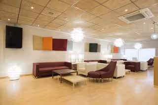Los clientes de la Sala VIP Azahar disponen de un espacio de descanso y trabajo confortable y acogedor, con conexión WiFi gratuita e ilimitada, PC con acceso a Internet, prensa nacional e internacional, pantallas con información de los vuelos en tiempo real, guardarropa, televisión, teléfono y fax y zona de aseos.
