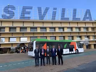 Las compañías Aviapartner y Air Rail han presentado este martes en el aeropuerto de Sevilla el primer autobús aeroportuario eléctrico que opera en un aeropuerto de España.