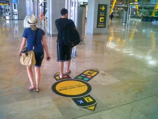 El aeropuerto de Madrid-Barajas ha reforzado ha reforzado la señalización para los pasajeros en conexión en la Terminal T4, mediante nuevas indicaciones horizontales, que refuerzan las verticales ya existentes, según ha informado Aena en un comunicado.