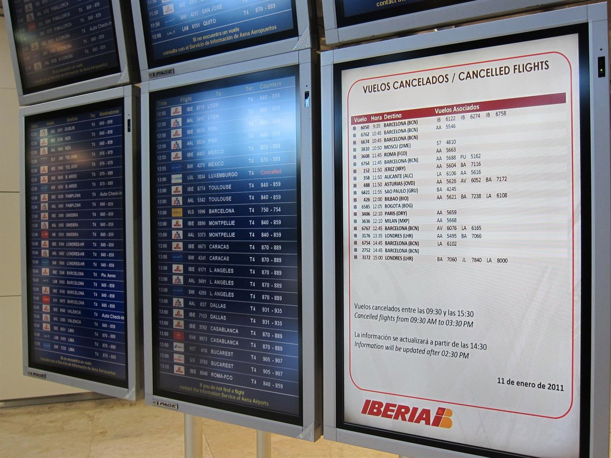 A su vez, el aeropuerto Adolfo Suárez Madrid-Barajas se ha visto menos afectado ya que únicamente ha registrado la cancelación de un vuelo de los 75 programados para este miércoles.