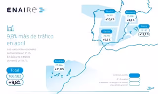 Con el dato de abril, se encadenan 43 meses consecutivos de crecimiento ininterrumpido del tráfico aéreo. Todos los centros de control han crecido por encima del 9%. ENAIRE destaca que este incremento está "muy por encima" de la media europea, que es del 2,8%.