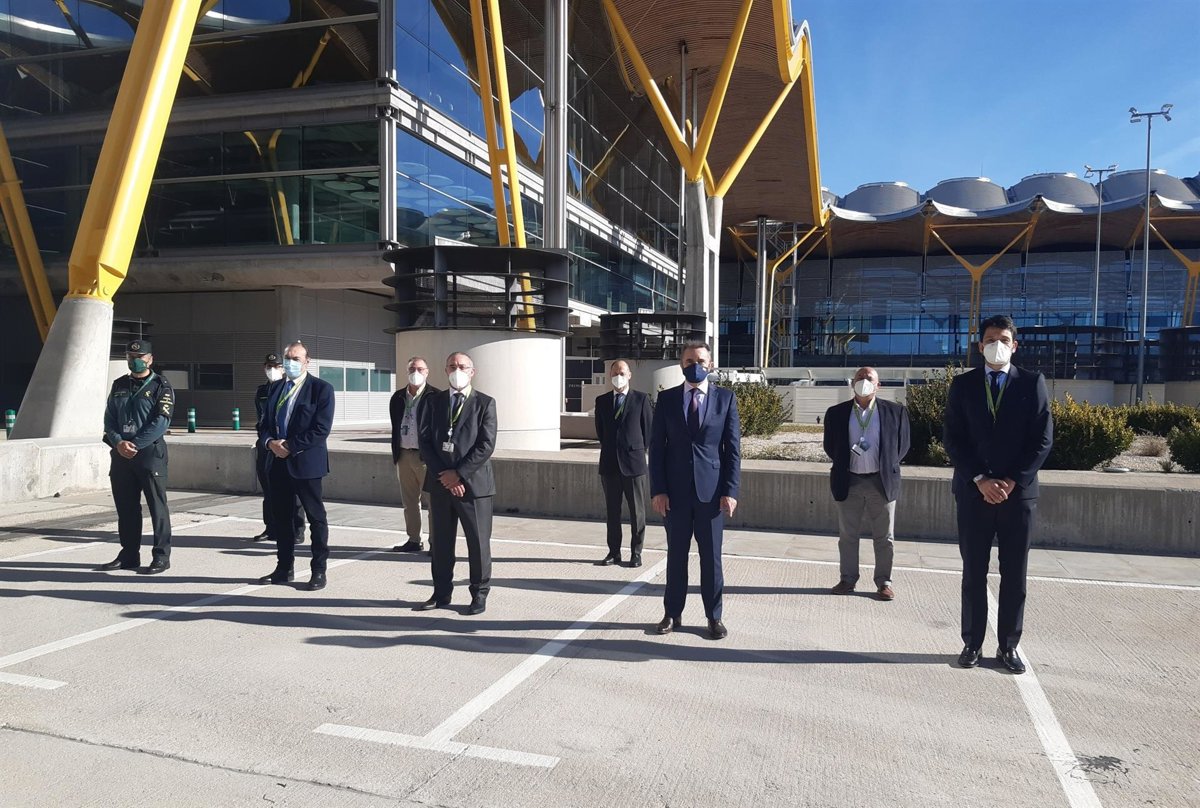 Durante este acto, ha visitado la Sala de Crisis del aeropuerto madrileño, el Centro de Gestión Aeroportuaria, las instalaciones de la Terminal 4 (T4) así como el área de test PCR Norte.