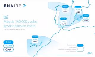 Mapa del tráfico aéreo en enero. - ENAIRE