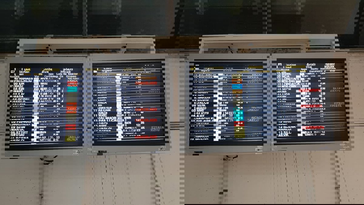 Peneles informativos del aeropuerto de Bilbao durante la primera jornada de huelga - EUROPA PRESS