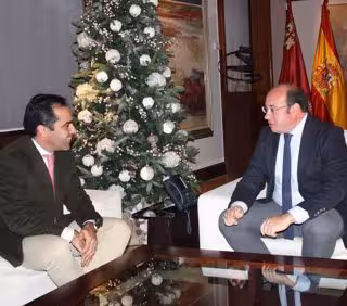 El presidente de la Comunidad, Pedro Antonio Sánchez, ha mantenido una reunión con el consejero delegado y fundador de la aerolínea Volotea, Carlos Muñoz, con quien abordó las potencialidades del nuevo Aeropuerto Internacional de la Región de Murcia.