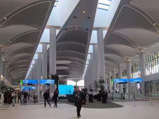 El nuevo aeropuerto de Estambul nace con la ambición de ser una referencia a nivel mundial. Construido al norte de la ciudad, en un área potencial de 76,5 millones de metros cuadrados, se desarrollará en cuatro fases, la primera de las cuales ha finalizado este año con tres pistas y una única terminal y capacidad para 90 millones de pasajeros al año.