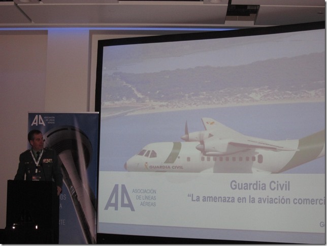 En la ponencia 'La amenaza en la aviación comercial', el general jefe de la jefatura fiscal y de fronteras, Juan Luis Pérez, analizó la situación actual de la seguridad en el sector del transporte aéreo internacional destacando que las amenazas se han modificado y, por tanto, la respuesta a éstas debería ser igualmente modificada para que puedan ser atajadas "con rapidez y efectividad".