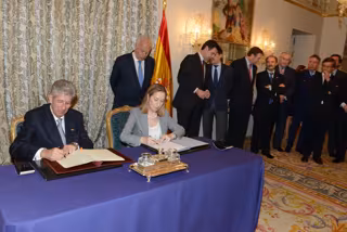 La ministra de Fomento, Ana Pastor, ha firmado este lunes un convenio de colaboración en materia de infraestructuras y transporte con el secretario de Comunicaciones y Transporte de México, Gerardo Ruiz, en el marco de la visita oficial a España del presidente de México, Enrique Peña.