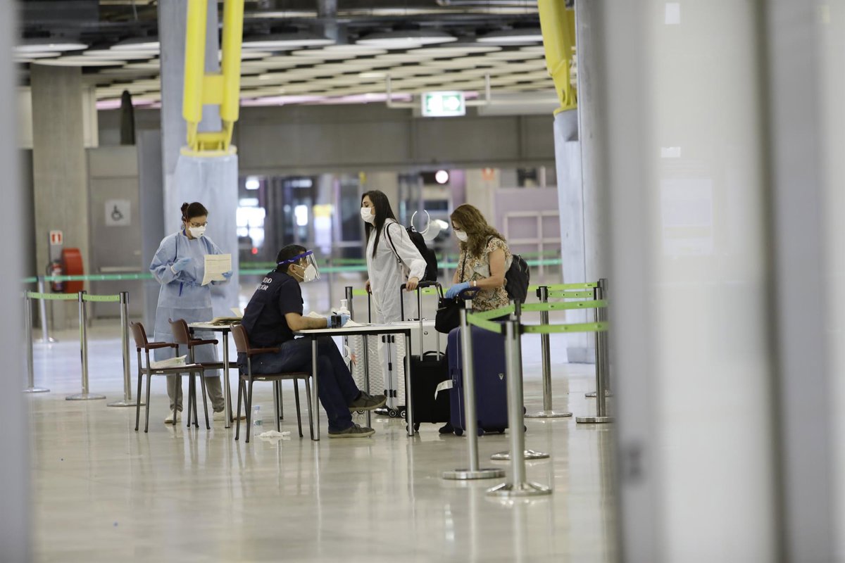 Varios pasajeros llegan al Aeropuerto Adolfo Suárez Madrid-Barajas procedente de Bogotá (Colombia), días después de la publicación en el BOE de que tan solo los aeropuertos de Barcelona, Gran Canaria, Madrid, Málaga y Palma de Mallorca tienen permitidos - Josefina Blanco - Europa Press